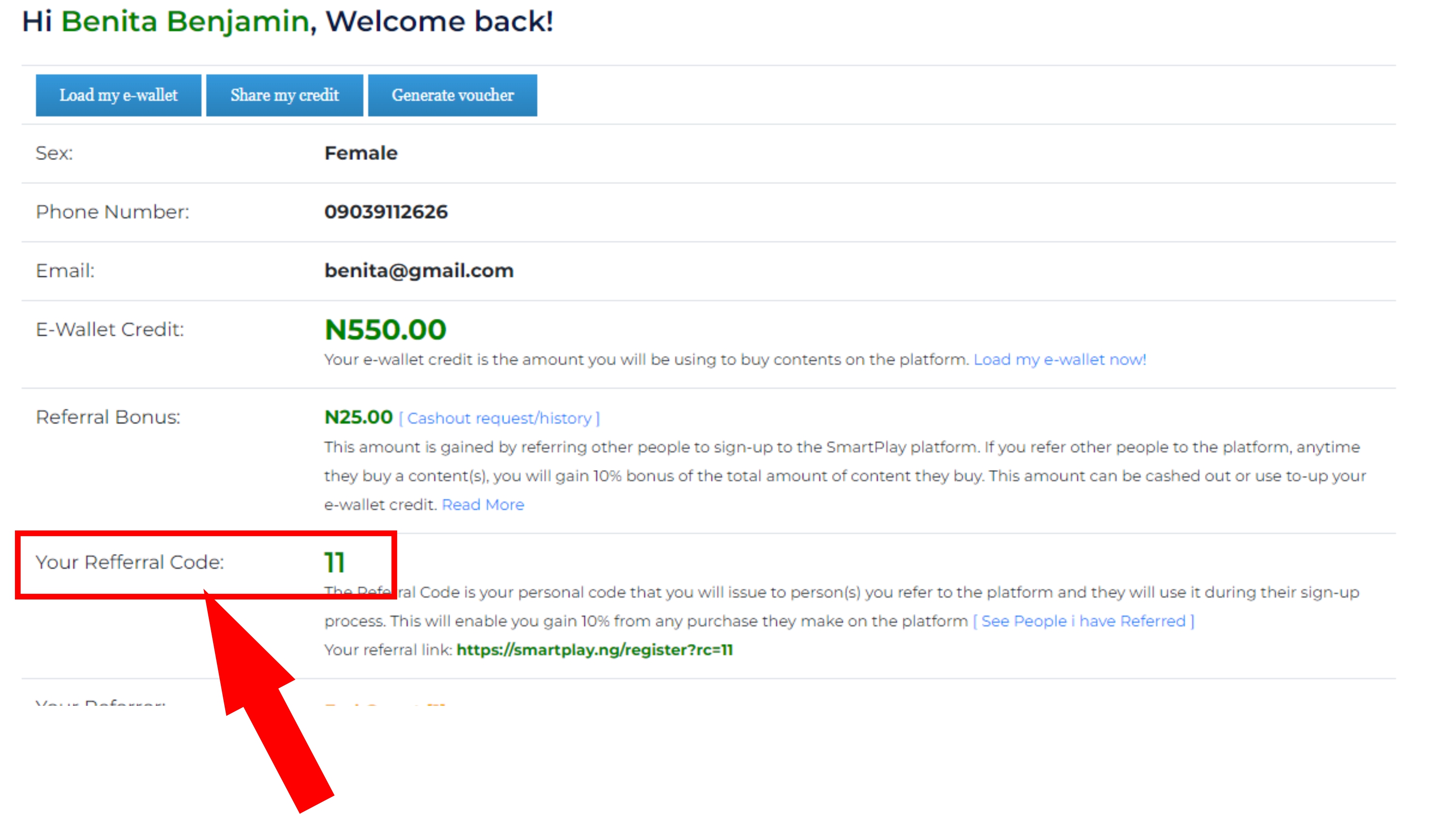 As a subscriber, SmartPlay Entertainment has provided you with an opportunity to make money on our platform by referring others to subscribe to the platform. When you refer other subscribers and they subscribe, you stand the chance of earning 10% from any content her/she purchases on the platform. So, the more people you refer to the SmartPlay platform, the more money you make!