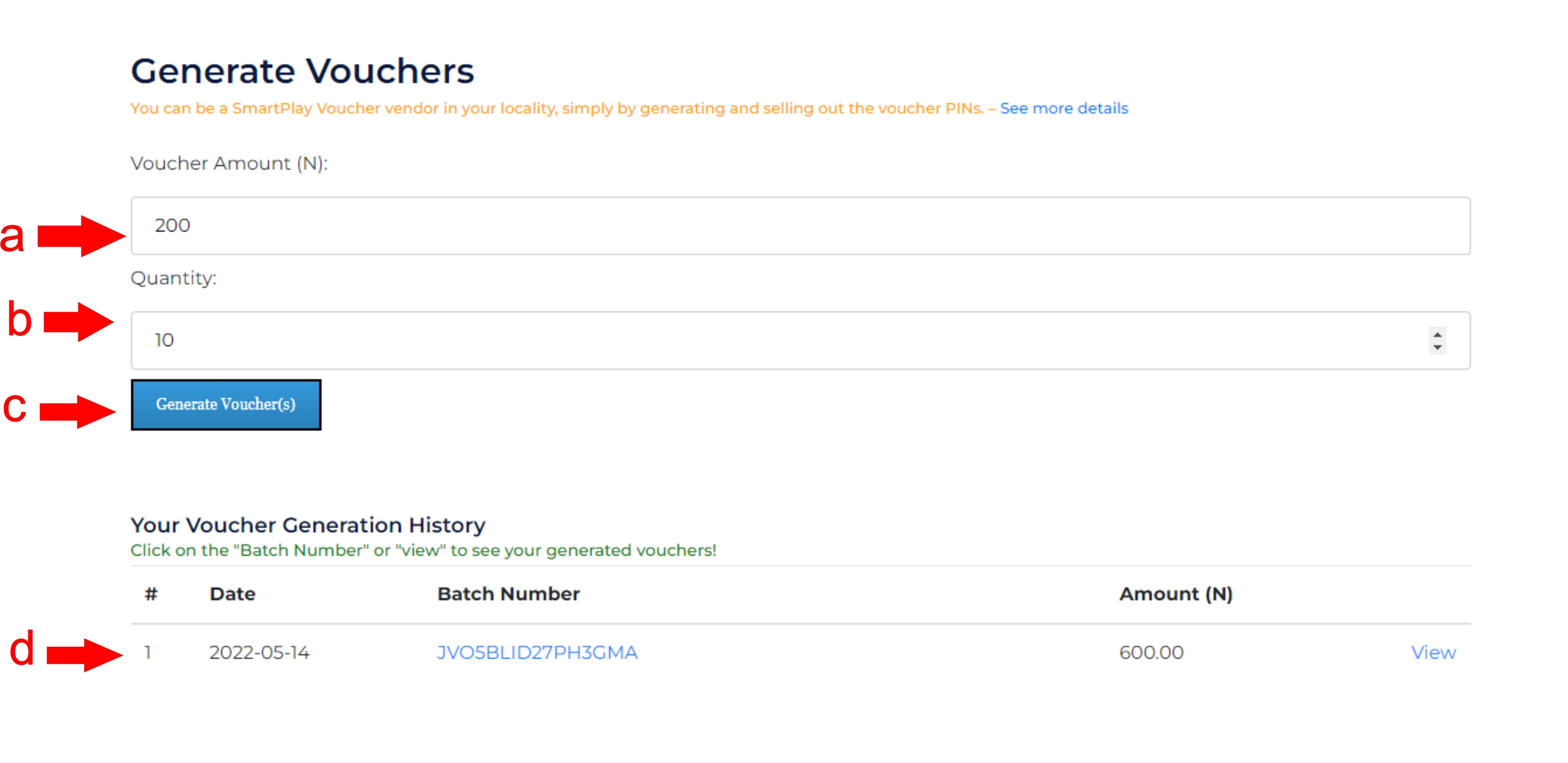 c - click on the Generate Voucher(s) button to generate your voucher cards