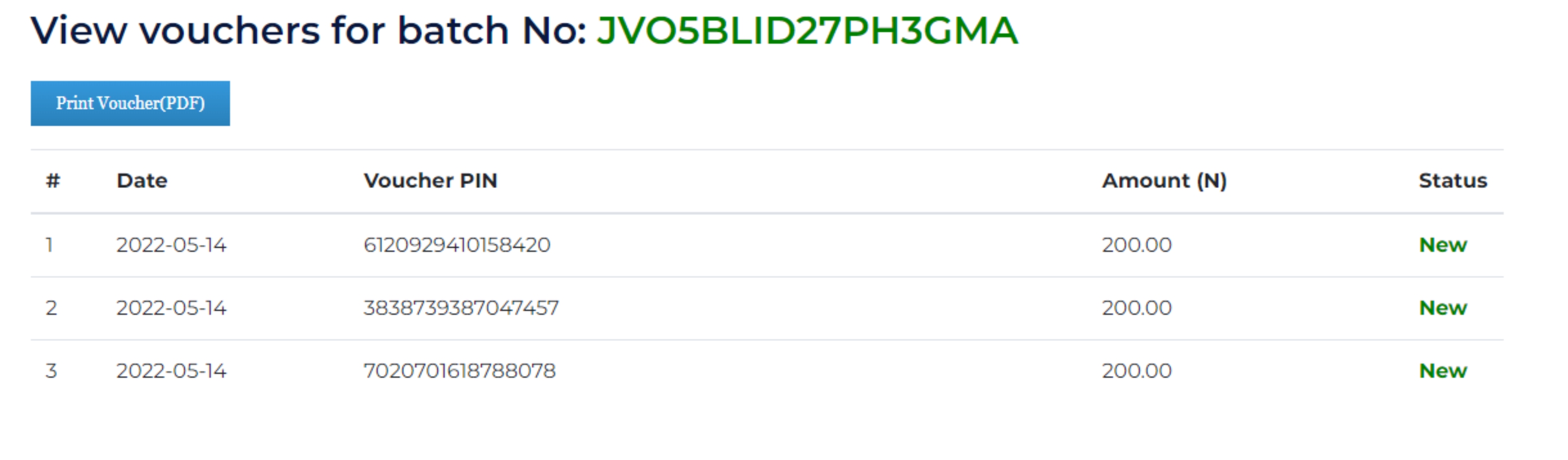 Step 3: Generate voucher PINs from your account of any amount and sell with an extra interest.